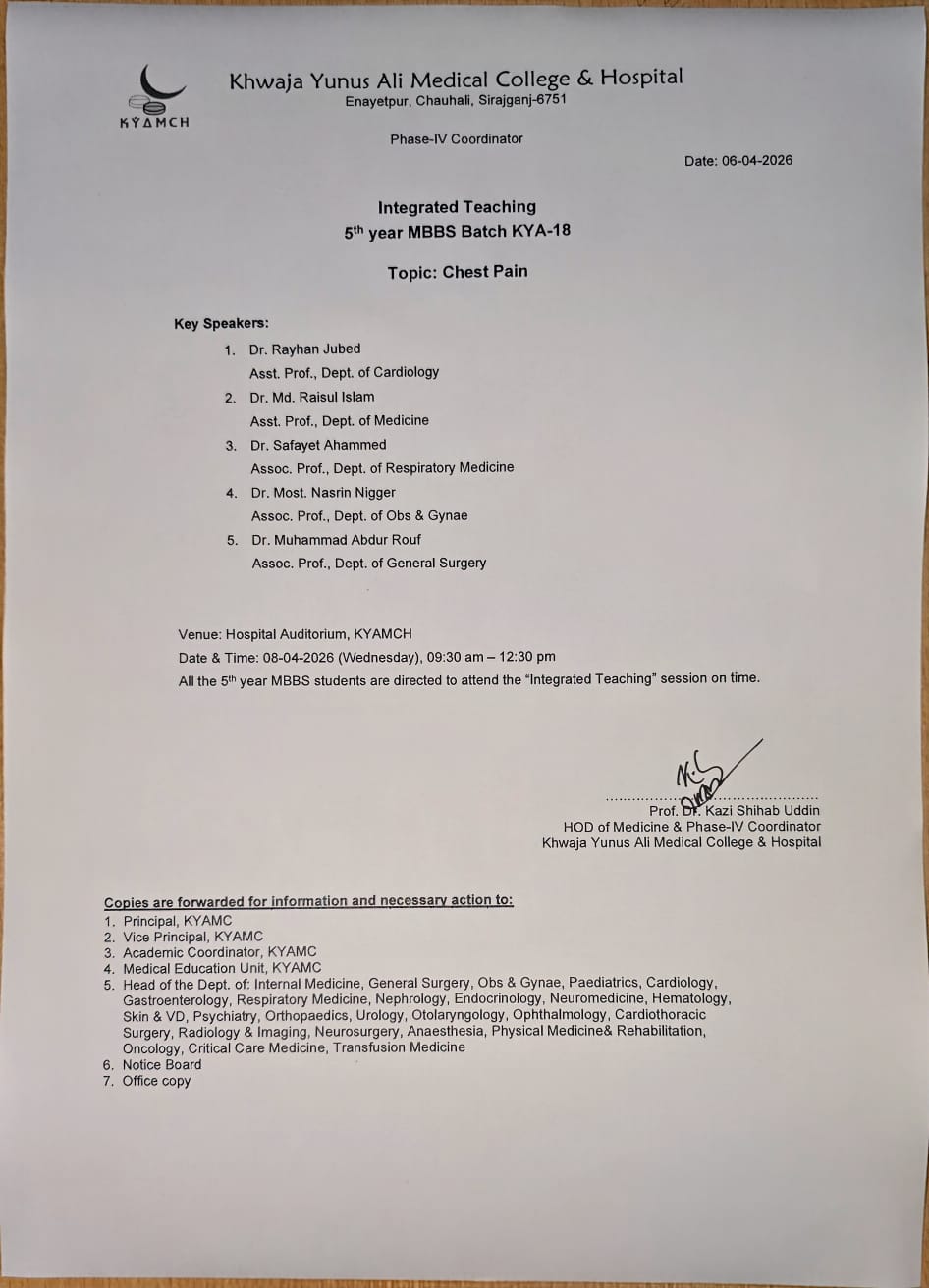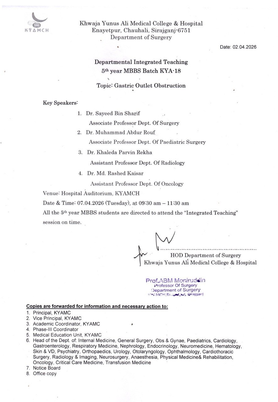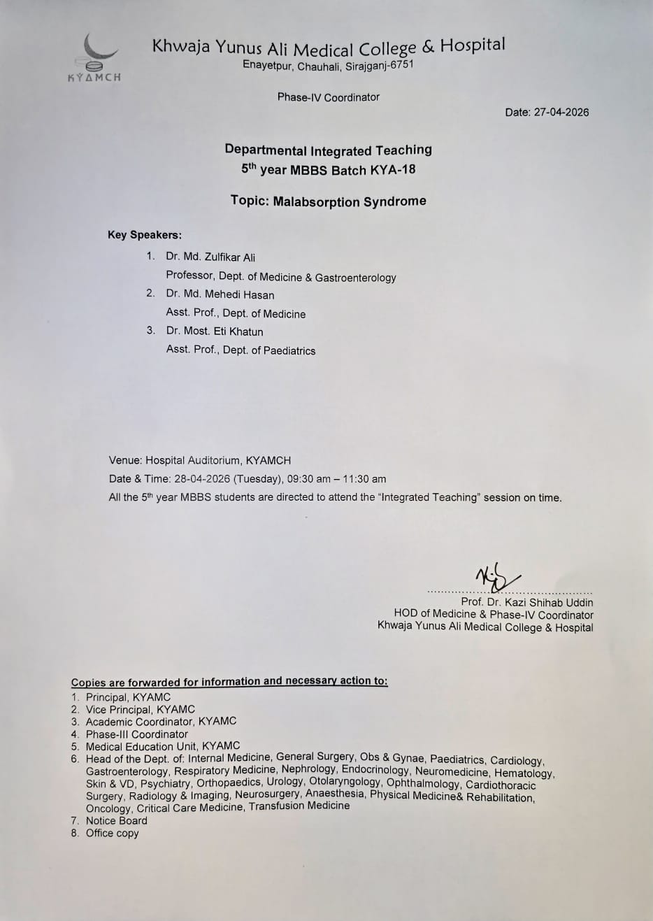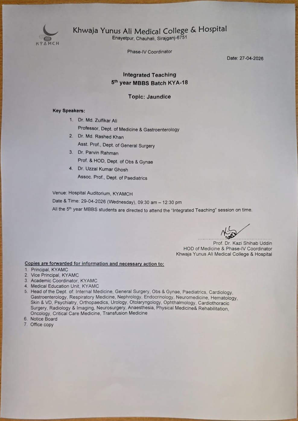 Organized by: Department of Pathology, Khwaja Yunus Ali Medical College Venue: Balighughri Bishwanabi (Sa.) Hafizia Madrasah & Orphanage, Sirajganj